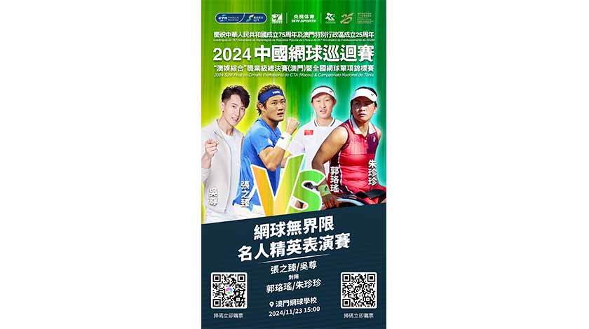 【特訊】澳娛綜合度假股份有限公司(「澳娛綜合」)第四度冠名贊助的國家級網球賽事–「2024 中國網球巡迴賽『澳娛綜合』職業級總決賽(澳門)暨全國網球單項錦標賽」即將於 2024 年 11 月 18 至 24 日盛大舉行,匯聚全國頂尖網球運動員來澳競技,勢讓世界聚焦中國,體現澳門融入大灣區以至國家體育發展大局的決心,並為粵港澳合辦 2025 年全運會作準備。準決賽當日,澳娛綜合更將舉行「網球無界限 – 名人精英表演賽」,為精彩網球盛事升溫。