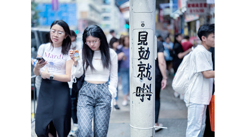 【圖片新聞】香港街頭“文字塗鴉”療癒陌路人。近年香港街頭出現不少“文字塗鴉”,以單純十數字的文字短句子寫在大街小巷牆壁或電箱上,寄語陌路人,盼望他們能在繁忙的生活中得到一點慰藉和樂趣。這一道獨特的街頭風景,吸引到不少內地文青到香港打卡留念。圖為旺角燈柱上的塗鴉,曖心提醒途人累了就休息一下。