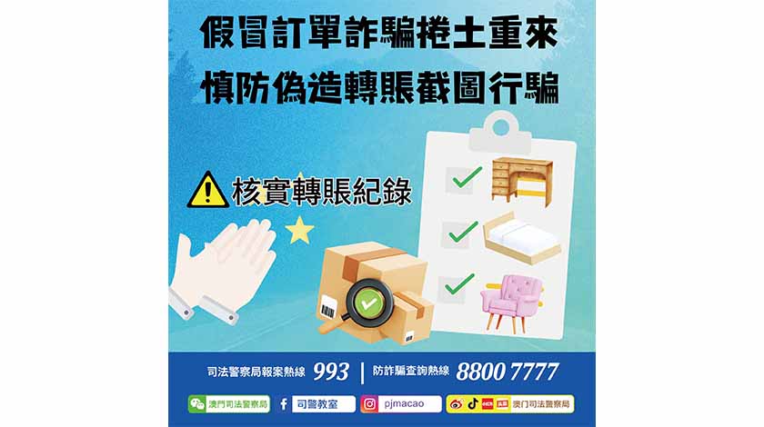 司警局反詐騙協調中心呼籲本澳市民、尤其各行業商戶: