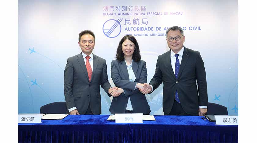 簽署儀式於澳門特別行政區民航局辦事處舉行,由中國民用航空局副局長梁楠、澳門特別行政區民航局局長潘華健和香港特別行政區政府民航處處長廖志勇共同出席並簽署文本。
