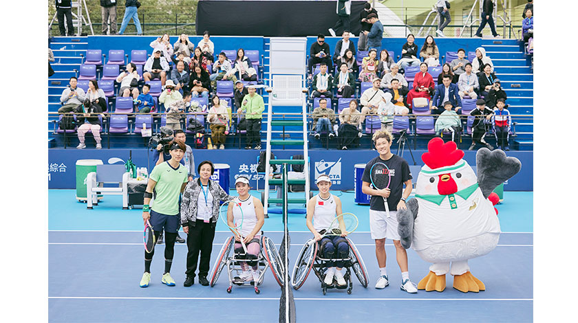 作為本次活動的重頭戲,名人精英表演賽的陣容可謂星光熠熠。在比賽現場,巴黎奧運網球混合雙打銀牌得主張之臻、巴黎殘奧會輪椅網球女子雙打銅牌得主郭珞瑤,以及 2024 法國網球公開賽輪椅網球女單亞軍朱珍珍等傳奇選手,展示他們非凡的球技,並與總決賽助力大使吳尊共同合作展開激烈的混合雙打比賽。選手們精湛的球技和默契的配合,贏得了觀眾陣陣掌聲和熱烈歡呼,使現場氣氛達到高潮。