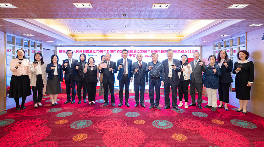 鏡湖慈善會理事長兼澳門鏡湖護理學院校董會主席劉永誠在致辭中回顧了新中國成立75年來的重大變革,並強調澳門在“一國兩制”下澳門的快速發展為該學院帶來了新的機遇,特別是在國際合作、課程質量及辦學條件等方面的提升。他表示,學院未來將持續與內地各省巿的三甲醫院緊密合作,並拓展國內外的頂尖醫療及教育合作網絡,為教學與科研的長足進步創切機遇,為社會培養更多優秀護理人才。劉永誠最後感謝社會各界對該學院的支持及學院全體人員的不懈努力,並祝願祖國繁榮昌盛,澳門特區再創輝煌。