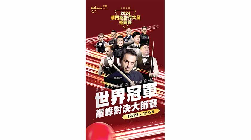 其中,《永利呈獻——2024 澳門桌球大師邀請賽》將於 12 月 25 日至 28 日在永利皇宮宴會廳舉行。九位頂尖國際職業球手,包括「永利品牌大使」、「球王」奧蘇利雲(Ronnie O'Sullivan)將與丁俊暉、傅家俊、卓林普( Judd Trump)、利素禾斯基(Jack Lisowski)、冰咸(Stuart Bingham)、鍾斯(Jak Jones)、威爾遜(Kyren Wilson)以及斯佳輝等世界頂尖國際職業球手同場競技,為觀眾帶來一場無與倫比的高水準桌球賽事。