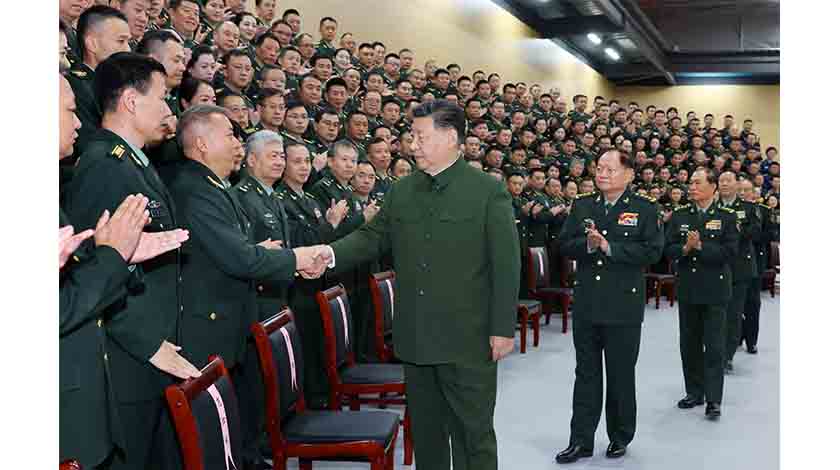 12月4日,中共中央總書記、國家主席、中央軍委主席習近平視察信息支援部隊,代表黨中央和中央軍委,對信息支援部隊第一次黨代表大會的召開表示熱烈祝賀,向信息支援部隊全體官兵致以誠摯問候。這是習近平同代表們親切握手。 新華社