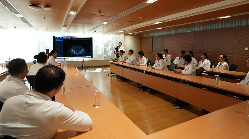協和專家團隊先在會議室討論早前的影像檢查,配合聽取患者的相關病史,隨後患者再由家屬陪同進入會診環節,由各專科醫生就各自相關專業仔細詢問其病情,並經詳細討論後,共同為患者制定最佳的治療方案,將過去一般需到多個專科就醫的模式,結合成為一體化、以患者為中心的診療模式。