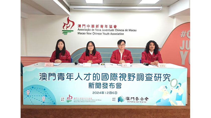 新青協在今年十月以街頭隨機問卷方式成功訪問了六百六十二名年齡介於十八至四十四歲、通常居所位於澳門的青年。同時研究團隊分別與八名具外地實習、工作經驗的本地青年代表及相關的政策持分者進行深入訪談,以進一步完善政策建議。該調查中,有兩成一受訪者認為自己的國際視野足夠,但亦有兩成一受訪者明確表示自身國際視野不足,五成七受訪者表示自身“國際視野一般”,而男性、具研究生學歷認為自身國際視野足夠者比例高於其他群體。受訪青年了解世界時事的主要途徑分別為﹕社交媒體(六成二)、電視 / 電台(四成)及網站(三成六)。另外,串流影音平台成為十八至二十九歲年輕一代接收世界時事資訊的主要平台。參與跨文化交流活動(近四成)到外地留學 / 交換(三成六)、參加遊學團 / 交流團(三成四)亦是較多受訪者視為能提升本澳青年的國際視野的措施。