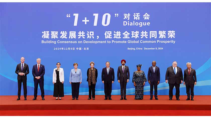 12月9日,中國國務院總理李強在北京同新開發銀行行長羅塞芙、世界銀行行長彭安傑、國際貨幣基金組織總裁格奧爾基耶娃、世界貿易組織總干事伊維拉、聯合國貿易和發展會議秘書長格林斯潘、國際勞工組織總干事洪博、經濟合作與發展組織秘書長科爾曼、國際清算銀行總經理卡斯滕斯、金融穩定理事會主席諾特、亞洲基礎設施投資銀行行長金立群舉行“1+10”對話會,圍繞“凝聚發展共識,促進全球共同繁榮”主題深入交流。 中新社