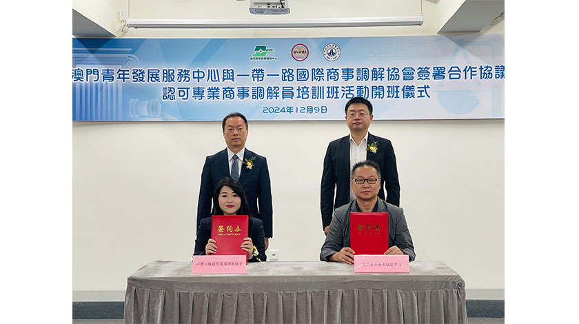 活動昨假澳門青年發展服務中心舉行,由中聯辦教青部青年廳副處長周權、法務局副局長邱顯哲、教育及青年發展局青年廳廳長張敏輝、橫琴粵澳深度合作區民生事務局副局長馮方丹、橫琴粵澳深度合作區法律事務局法律研究和服務處處長何仕平、澳門青年發展服務中心總幹事黃永曦、珠海市涉外公共法律服務中心主任吳振、一帶一路國際商事調解協會理事長許冰為該課程主持開班儀式。課程邀請了粵港澳三地資深導師組成教學團隊,期望有助學員全面提升調解能力,有二十四名澳門青年將成為認可專業商事調解員,積極推動橫琴粵澳深度合作區建設成為國際商事爭議解決和風險管理人才培養的高地。