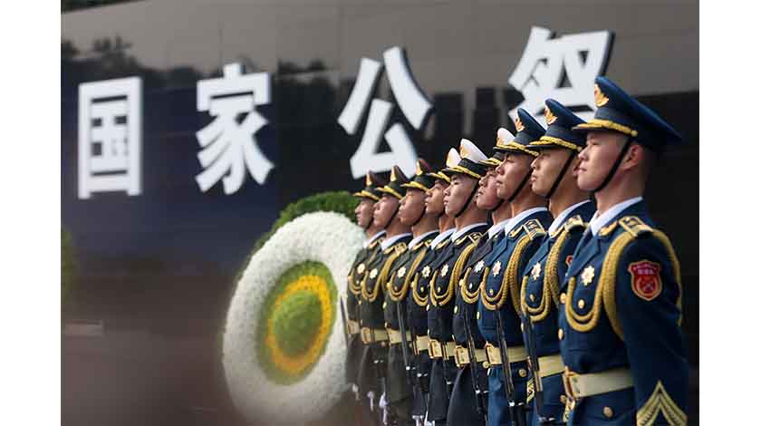李書磊指出,我們舉行國家公祭,就是要宣示牢記歷史、不忘過去,珍愛和平、開創未來的堅定立場,展現新時代中國共產黨和中國人民繼承先烈遺志,書寫強國建設、民族復興新篇章的堅強決心。我們要凝聚團結奮鬥、攻堅克難的力量,發揚自信自立、改革創新的精神,堅定守護和平、維護正義的追求。銘記歷史是為了更好前行。讓我們更加緊密地團結在以習近平同志為核心的黨中央周圍,萬眾一心,奮發有為,為以中國式現代化全面推進強國建設、民族復興偉業而努力奮鬥,為人類和平和發展的崇高事業作出更大貢獻。