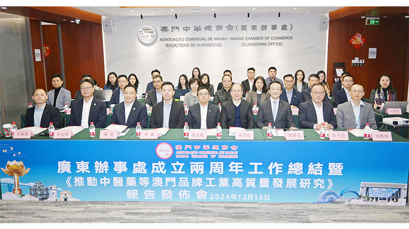 【特訊】正逢澳門回歸25周年,澳門中華總商會廣東辦事處成立兩周年之際,廣東辦舉辦兩周年工作總結暨「推動中醫藥等澳門品牌工業高質量發展研究」報告發布會。廣東省委橫琴工委委員、省政府橫琴辦副主任葉真,省貿促會、廣東國際商會副會長姚信敏,合作區執委會副主任蘇崑,中總理事長兼廣東辦首席代表馬志毅、副理事長兼粵港澳大灣區工作委員會主任劉藝良等出席。