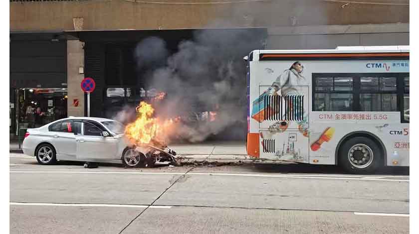 女死者五十七歲、本澳居民。事發於昨日下午近四時,據現場消息指,當時一輛澳門巴士公司大巴正沿慕拉士大馬路向漁翁街方向行駛,駛至一斑馬線前方停下讓行人時,尾隨的一輛白色寶馬疑收掣不及,猛撞向巴士的車尾。由於衝力頗大,私家車車頭損毀嚴重,車頭並且著火,火勢一度非常猛烈。
