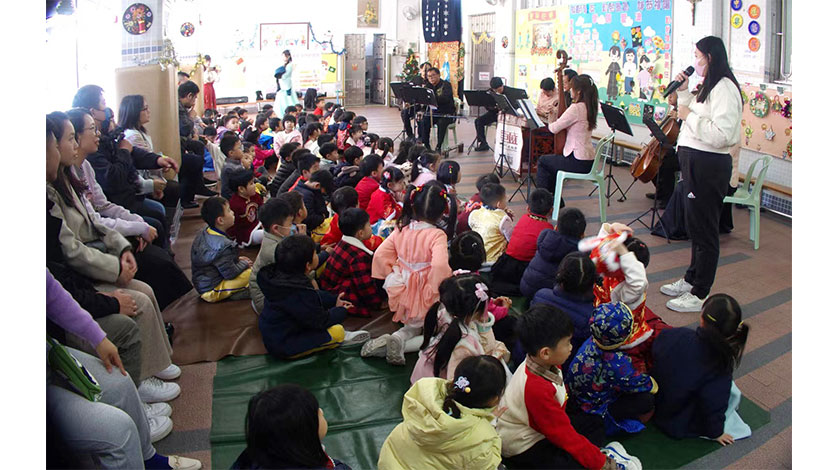 12月18日,長虹音樂會民族樂團應到聖瑪沙利羅學校邀請,參加該校“2024歡賀國慶迎回歸,童創澳門新願景”活動,作走進校園中國民樂推廣演出,樂團一連舉行三場民樂推介音樂會,給不同班級的同學作表演。除向同學們介紹中國民族樂器 - - 吹、彈、拉、打四大類不同的樂器在演奏中的音樂效果,還配合雙慶題材演奏如“七子之歌“等相關樂曲,並詳細介紹每首演奏樂曲,分別合奏不同地方民歌及民樂組曲,令同學們對中樂產生興趣,並與樂隊產生互動,氣氛熱烈,讓中國民族音樂在校園開花。活動共有兩百多名師生參與。