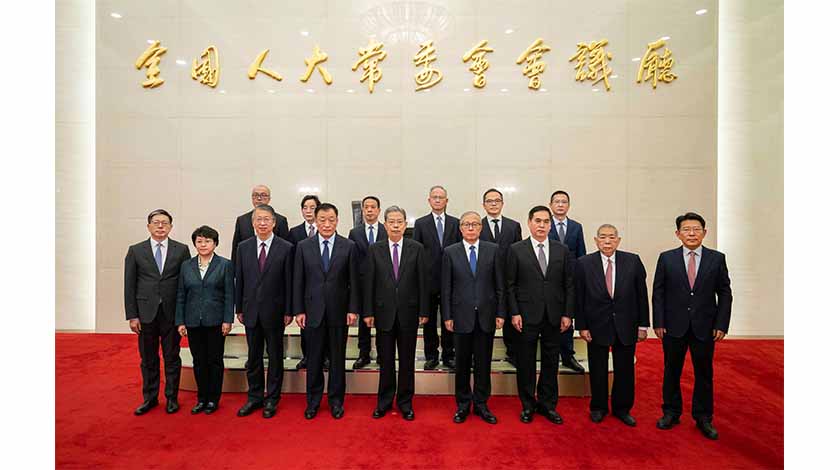 【中新社北京12月25日電】:全國人大常委會委員長趙樂際25日上午在北京人民大會堂向第六任全國人大常委會澳門特別行政區基本法委員會組成人員頒發任命書。