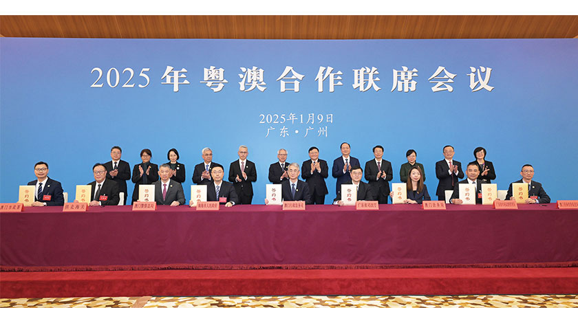 【特訊】2025年粵澳合作聯席會議昨日在廣州舉行,行政長官岑浩輝和廣東省省長王偉中分別率領兩地政府代表團出席會議。雙方總結肯定在粵澳兩地政府共同努力下,橫琴粵澳深度合作區的建設取得重要階段性成果,粵港澳大灣區各項建設工作紥實推進,兩地攜手推動粵澳合作邁向更高水平、更深層次、更多領域的新階段。展望未來,雙方要從國家發展戰略全局出發,更好發揮“一國兩制”制度優勢,深度整合粵澳兩地優質資源,讓粵澳合作的果實更為豐碩靚麗。