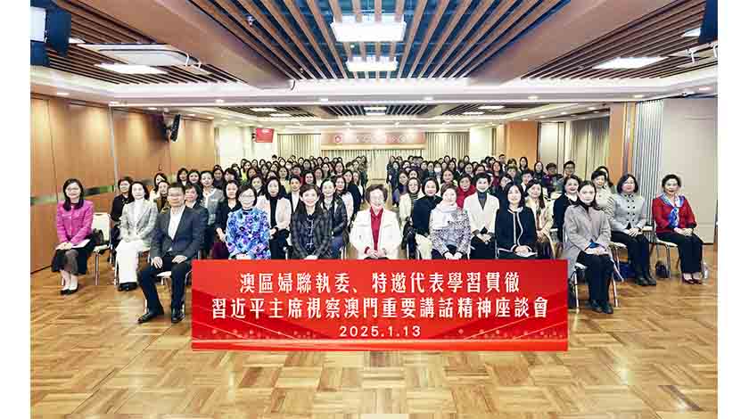 【特訊】澳區婦聯執委、特邀代表1月13日晚在婦聯大廈舉行座談會,傳達學習習近平主席視察澳門重要講話精神。全國婦聯常委賀定一,中聯辦協調部部長仇昱、副部長王曉剛,澳區婦聯執委、特邀代表,澳門婦女聯合總會理監事、青年代表以及婦女工作者近200人出席會議。