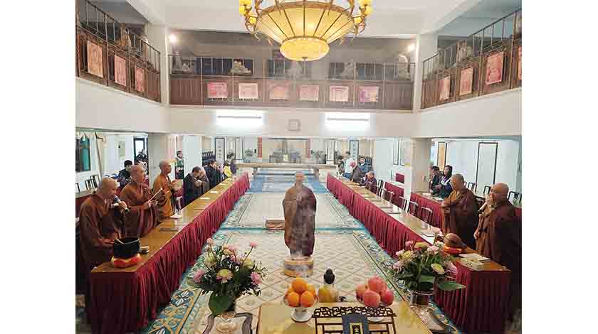 當天早上九時半,由菩提社會服務大樓管理委員會主席釋心慧法師帶領一眾參加者在三樓佛堂及五樓大雄寶殿一同誠心禮佛。心慧法師表示腊月初八是一個吉祥的日子,感恩諸位善信出席參與,祈望大家新一年繼續身體健康,六時吉祥,平安喜樂。是次法會有超過100位的長者、家屬、義工及社區人士參與,共同感恩祈福,廣增福慧,闔家如意,共沾法喜。