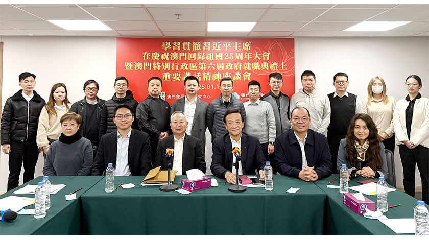 【特訊】為領會習近平主席的重要思想與講話精神,發策中心日前舉辦“學習貫徹習近平主席在慶祝澳門回歸祖國25周年大會暨澳門特別行政區第六屆政府就職典禮上重要講話精神”專題座談會。座談會由該中心會長蕭志偉、副會長劉藝良、理事長高岸聲、副理事長兼秘書長陳志峰等代表出席,並邀請中心成員共同參與。是次座談會進一步凝聚了中心成員共識,與會者圍繞“三點期許”、“四點希望”等關鍵內容展開深入交流,共同探討習近平主席重要講話精神對澳門未來發展的深遠意涵,並為澳門日後的繁榮穩定和蓬勃發展建言獻策。