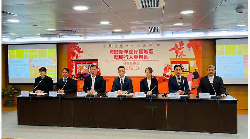 經研究及評估去年農曆新年及國慶假期“氹仔舊城區臨時行人專用區”的實施情況,並聽取氹仔居民及商戶意見後,特區政府再次與社團合作,於一月二十九日至二月四日(年初一至初七)中午十二至晚上七時,在氹仔舊城區設置臨時行人專用區。經濟及科技發展局、交通事務局、治安警察局、旅遊局、文化局及市政署,聯同澳門街坊會聯合總會、氹仔社區發展促進會、氹仔坊眾聯誼會及澳門離島工商業聯合會,昨假經科局舉行發布會,介紹有關安排。(見圖)