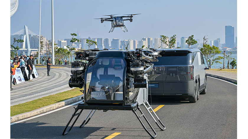 1月21日,海南飛行汽車應用示範島項目在海口啟動。該項目將在海南環島旅遊公路沿線佈局數十個飛行營地,勾勒出一條獨特的“空中環島旅遊公路”。圖為小鵬匯天在儀式上展示全球首款可在汽車上自動分離結合的電動純直起降飛行器。 中新社