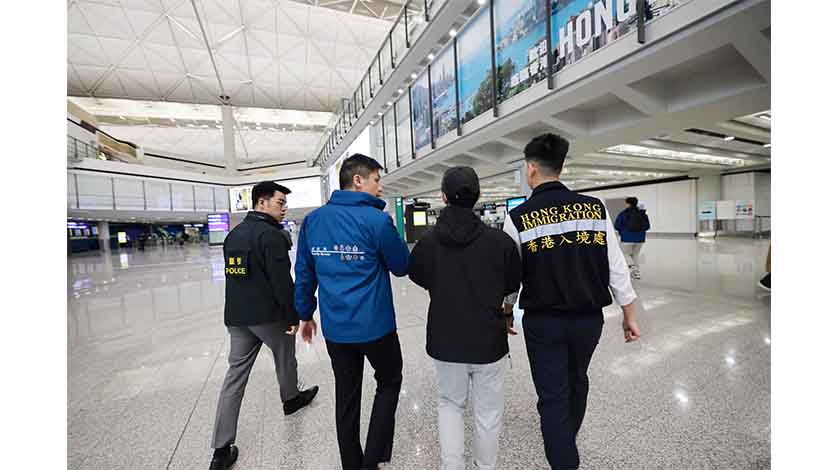 據保安局公佈的官方照片,獲救港人與保安局人員抵達機場。照片中獲救港人正面對著鏡頭,戴著口罩難掩開心笑容,頭戴黑色鴨舌帽,腳穿人字拖鞋。