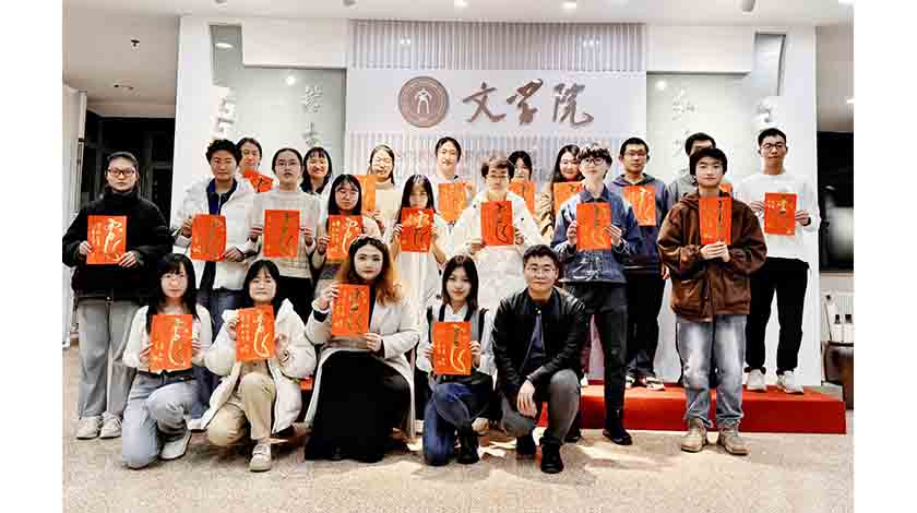 【中新社北京1月27日電】(作者 張楊彬 朱賀)乙巳蛇年的腳步越來越近,北京師範大學文學院裡滿是紅火的年味。各面玻璃、書櫃貼著琳琅滿目的“新桃”,當中有張稍顯抽象的圖案,略懂書法的人看到它往往會心一笑——一張化用了甲骨文、金文、小篆元素的“蛇”字,側邊寫著“靈蛇起舞 萬象更新”。