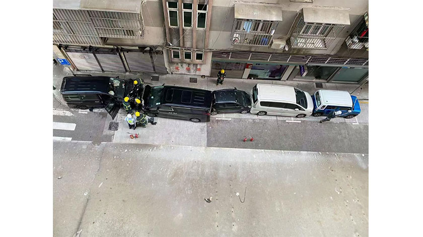 【本報訉】姑娘街與雅廉訪交界昨日傍晚發生交通意外,一輛私家車懷疑失控高速撞向泊於路旁的四輛私家車,兩部私家車車頭嚴重損毁。肇事私家車男司機一度昏迷,車上-名女乘客亦受傷送院。事故原因有待警方進一步調查。