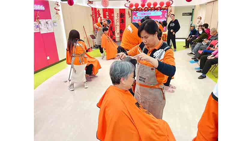 此次活動包括義務剪頭髮及書法攤位,吸引眾多社區居民的積極參與。義務剪頭髮服務共有二十五位長者參與,並邀請到美高梅金獅義工隊進行義剪,期望長者以新面貌迎接新一年,進一步推動社區居民多關懷長者及傳承孝道文化。書法攤位則讓居民親身體驗書法藝術及傳統拓印工藝,感受中華藝術的深厚底蘊。