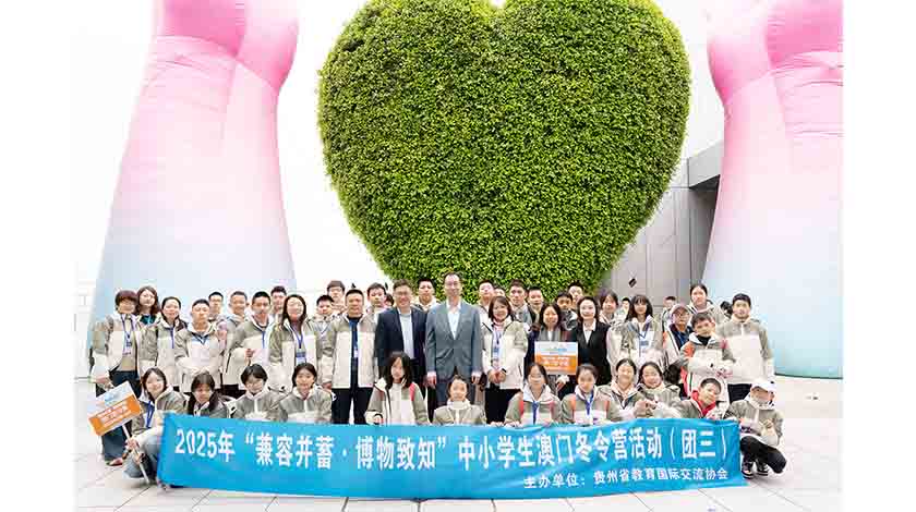 【特訊】貴州省教育國際交流協會2月11日下午率領130多位來自貴州省的中小學生及教師到澳門科學館進行研學活動,並為“兼容並蓄,博物致知”澳門冬令營活動舉行開營儀式,獲澳門科學館股份有限公司董事兼執行委員會委員、館長邵漢彬及董事余漢生等親切接待。
