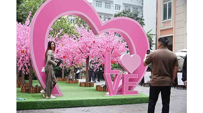 【香港中通社2月14日電】(香港中通社記者 梁嘉軒)恆生指數高收、陰雨後放晴,2月14日西方情人節,股市和天氣都來香港助興。傍晚煙霞散去,中環的上班族陸續下班過節,街邊的花束和餐廳裝飾,讓愛侶和單身人士都有好心情消費。