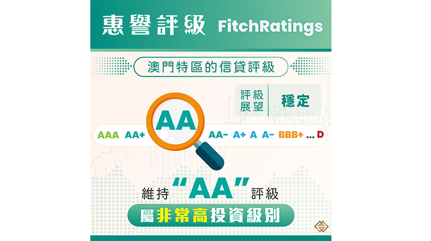 惠譽維持澳門特區屬於第三高級別的“AA”評級,主要是基於特區非常穩健的公共財政和對外收支狀況,以及特區政府縱使在經濟調整期仍堅守審慎的財政管理。與此同時,惠譽預期旅遊業和非博彩投資進一步增長,加上內地居民赴澳旅遊政策放寬及旅遊基建持續優化,將對澳門特區的經濟前景提供支援。