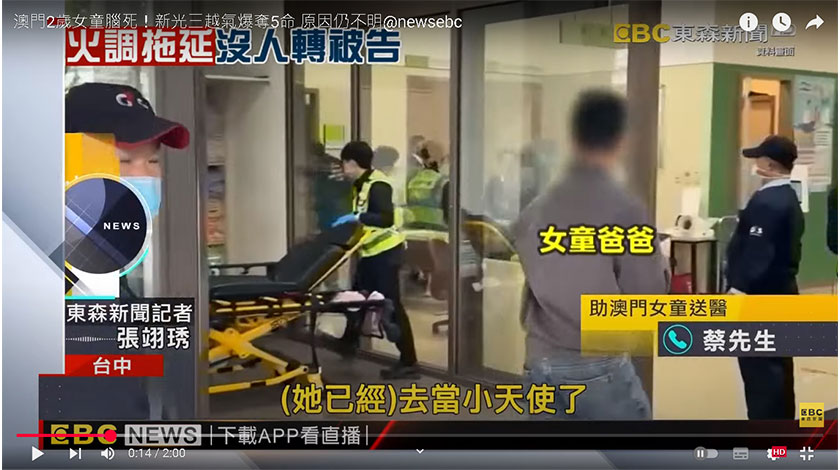 【本報訊】台灣台中新光三越百貨公司氣爆事故滿一個月。台灣傳媒東森新聞昨晚報道,事故中重創、後回澳繼續在山頂醫院治療的本澳鄧姓兩歲女童已於六天前、上周五(七日)離世,旋引起本澳網民熱議。衛生局及至今日凌晨發稿證實女童不治消息。