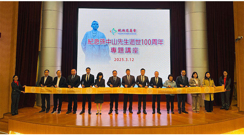 「紀念孫中山先生逝世一百周年專題講座」昨邀請中聯辦台灣事務部部長李永剛、衛生局局長羅奕龍、文化局代副局長蔡健龍、鏡湖醫院慈善會主席廖澤雲等嘉賓出席及主持開幕儀式。期望藉該活動,由孫中山年青時在澳行醫事蹟出發,傳承熱愛國家的精神。