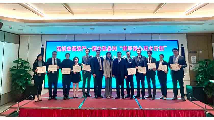【本報訊】由海事及水務局與澳門酒店旅業商會合辦的建設幸福澳門---酒店業參與「樓宇安心用水計劃」,昨舉行動員儀式暨嘉許狀頒授大會,再有十間酒店加入「樓宇安心用水計劃」。海事及水務局局長黃穗文致詞時表示,澳門需以行動回應,透過政府、企業、市民齊心協力,做好「從水箱到水龍頭」的守護工作,確保每滴水能夠安全抵達用水戶,令珍貴的水資源用得其所。