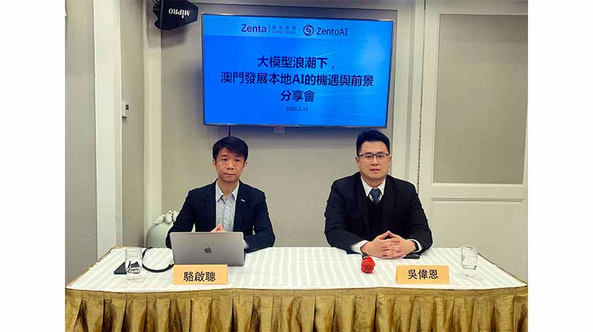 道元集團有限公司及道元智能科技有限公司昨假京都酒店聯合舉辦「大模型浪潮下,澳門發展本地AI的機遇與前景」分享會,由道元集團董事長吳偉恩及道元智能科技有限公司副總裁駱啟聰分享本地發展AI的前景看法。