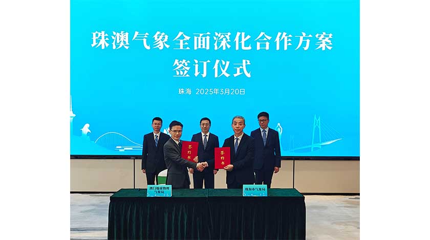 【特訊】為進一步深化和促進澳門與珠海的氣象事業協同發展,澳門地球物理氣象局局長梁永權與珠海市氣象局局長趙永利於3月20日在珠海市共同簽署《珠澳氣象全面深化合作方案》,標誌著珠澳兩地的氣象事業進入全方位的合作發展新階段。