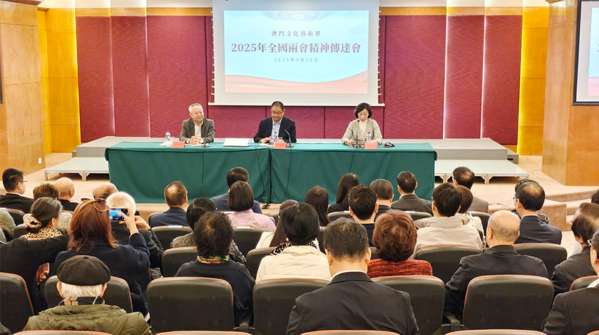 中央人民政府駐澳門特別行政區聯絡辦公室宣傳文化部部長萬速成、副部長白冰、文化發展基金行政委員會委員許鑫源出席傳達會。傳達會邀請澳區全國人大代表、澳門發展策略研究中心會長蕭志偉以及全國政協文化文史和學習委員會副主任、澳門文化界聯合總會會長吳志良擔任分享嘉賓,向上百位澳門文化藝術界人士傳達2025年全國兩會的精神及核心內容,澳門文化界聯合總會副會長穆欣欣擔任會議主持。