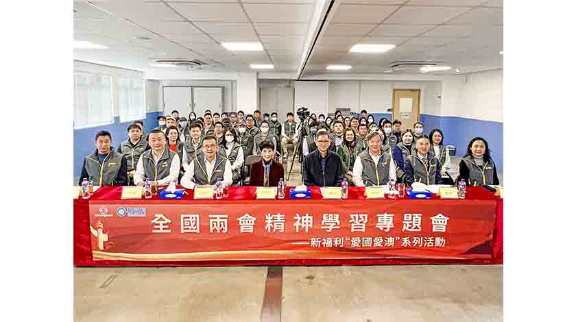 【特訊】為深入學習貫徹2025年全國「兩會」精神,新福利日前舉行「愛國愛澳」系列活動——全國「兩會」精神學習專題會,邀請澳區全國人大代表、澳門工會聯合總會會長何雪卿及全國政協澳區委員、澳門工會聯合總會理事長李從正擔任主講嘉賓,向新福利員工傳達和分享「兩會」精神和感悟,解讀國家的方針政策和發展方向。新福利董事局主席廖僖芸、董事曾雲強等管理層,帶領一眾員工代表出席。