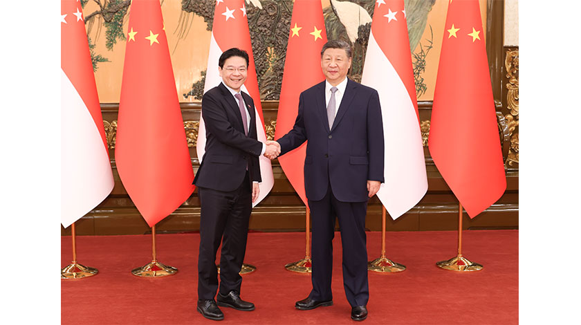 習近平強調,中新要牢牢把握兩國友好大方向,始終從戰略高度和長遠角度看待和發展中新關係,確保航向不偏、動力不減。要築牢中新友好政治基礎,支持彼此核心利益和重大關切,以更高水平政治互信服務兩國關係發展。中方歡迎新方繼續深度融入中國發展,雙方要深入推進共建“一帶一路”合作,打造數字經濟、綠色發展、人工智能等領域標誌性成果,推動重大項目提質升級,續寫高質量合作新篇章。要鼓勵兩國人民常來常往,深化人文交流合作,讓中新友好更加深入人心。中方始終認為,和平、發展、合作、共贏的時代潮流不可阻擋,世界不能重拾霸權主義,不能被拖回叢林法則。中方願同新方一道,站在歷史正確一邊、站在公平正義一邊,共同倡導平等有序的世界多極化、普惠包容的經濟全球化,推動世界走向和平、安全、繁榮、進步的光明前景。