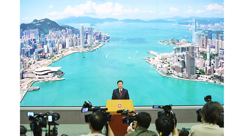 李家超說,對於這些形形式式、林林種種的軟對抗,市民要擦亮眼睛。特區政府會根據《維護國家安全條例》,以維護國家安全為重要考慮,在提防軟對抗這方面一定會繼續工作,亦提醒大家小心軟對抗。