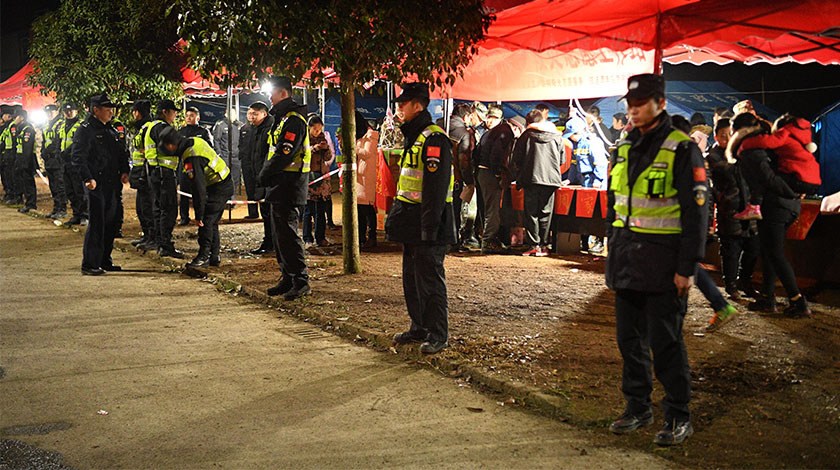 12月17日,四川興文,周家鎮臨時安置點一片繁忙。四川興文地震震中周家鎮臨時安置點,寒風中的志願者正在統計和安置受災民眾,安保人員維護秩序。12月16日,四川省宜賓市興文縣周家鎮發生5.7級地震,震源深度12千米。(中新社圖片/ 劉忠俊 攝)
