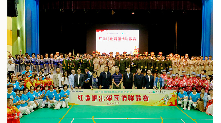 【特訊】由澳門街坊會聯合總會主辦、澳門基金會贊助的2025“紅歌唱出愛國情”聯歡賽,已於8月2日在街坊總會社區服務大樓6樓圓滿舉行。本屆賽事反響熱烈,共吸引來自全澳各區的15支優秀隊伍、近352名熱情選手同台競技,以昂揚歌聲共抒愛國心聲。