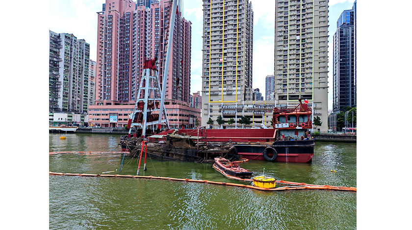 今年2月中,相關部門通報有兩艘被扣押漁船沉沒。為防範兩艘漁船溢油,海事及水務局接報後已即時到現場佈置隔油帶和吸油條等設施,並持續監察海面情況,與有關單位保持溝通以跟進有關情況。
