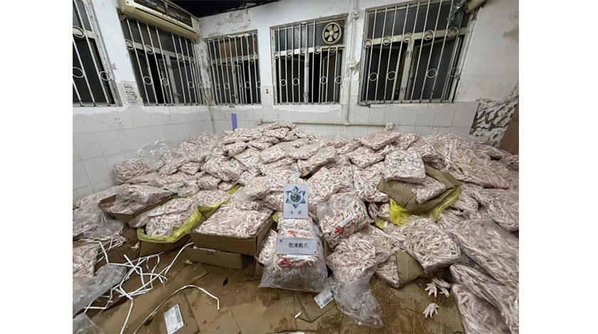 海關持續打擊水客活動,前日在市內巡查期間,發現北區一個懷疑水客活動散貨點,隨即採取行動,在鋪內發現大量急凍雞爪,點算合共約三千公斤,市值約十五萬澳門元,行動中在現場拘查一名負責人。