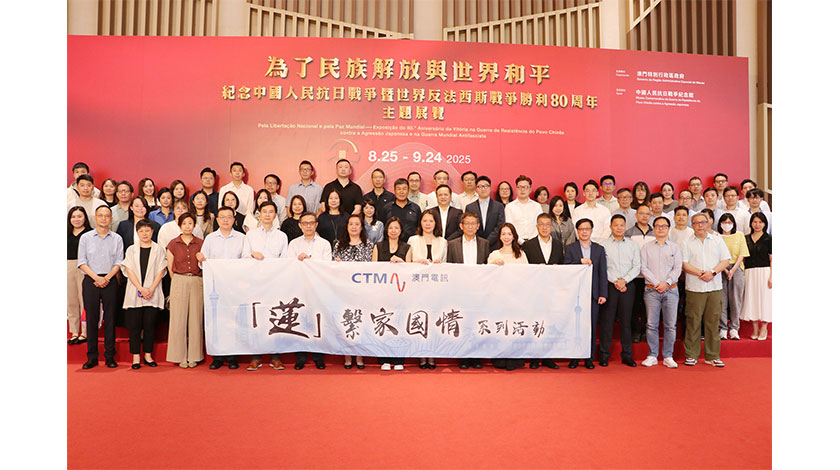【特訊】為傳遞愛國愛澳愛家精神,澳門電訊(CTM)透過「蓮」繫家國情系列活動,鼓勵和組織員工們參與不同的愛國愛澳活動。8月25日下午,超過50名員工在行政總裁潘福禧的帶領下,參觀“為了民族解放與世界和平──紀念中國人民抗日戰爭暨世界反法西斯戰爭勝利80周年主題展覽”,讓同事們更深刻認識抗爭勝利的偉大意義,銘記歷史,緬懷先烈,激發愛國愛澳熱情,持續增進民族自豪感。