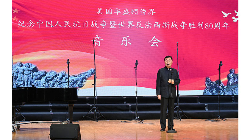 華盛頓僑界紀念中國人民抗日戰爭暨世界反法西斯戰爭勝利80周年主題音樂會當天在華盛頓舉行。謝鋒應邀出席音樂會並致辭時作上述表示。
