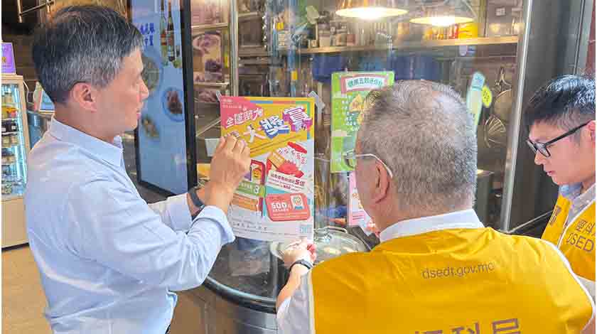 為擴大活動宣傳力度,讓活動資訊深入本澳社區,經濟及科技發展局)與澳門中華總商會正全面展開系列宣傳工作。近日,雙方落區走訪社區商戶,現場派發宣傳海報,並詳細講解活動內容、參與條件及核銷細則,推動社區商戶積極響應,主動配合特區政府促消費措施;同時鼓勵商戶同步推出疊加優惠,共同激發社區消費潛力,助力社區經濟發展。