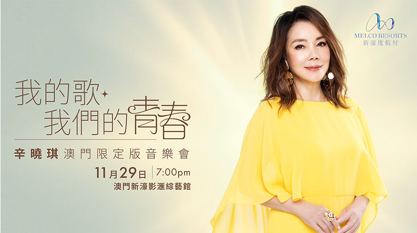 40年來,辛曉琪以其標誌性的動人歌聲和細膩的情感征服了無數樂迷。她的經典代表作《領悟》、《味道》、《遺忘》等,憑著直擊人心的歌詞與旋律,成為跨越世代的情感共鳴。這次新濠影滙的音樂會,辛曉琪將重溫她的經典金曲及為樂迷重新演繹多首不同時代經典歌曲,從抒情慢歌到輕快動人的都市情歌,不僅是辛曉琪對音樂生涯的深情回顧,更是一場近距離與樂迷共譜青春的盛宴。