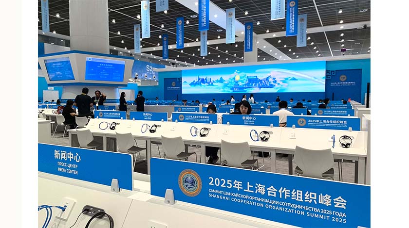 【中新社天津8月28日電】 (曾玥 周昕)2025年上海合作組織峰會新聞中心8月28日8時起正式開放。新聞中心設立在天津梅江國際會展中心,為中外注册記者提供服務。
