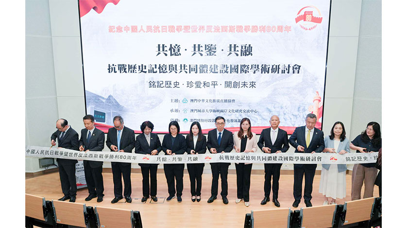 【特訊】由澳門中華文化推廣直播協會主辦,澳門城市大學海峽兩岸文化研究交流中心承辦,澳門特別行政區政府文化發展基金資助的“紀念中國人民抗日戰爭暨世界反法西斯戰爭勝利80周年,共憶•共鑒•共融─抗戰歷史記憶與共同體建設國際學術研討會”29日上午在澳門城市大學何賢會議中心舉行開幕式。研討會邀請來自內地、澳門、台灣和東南亞等相關領域學者,值中國人民抗日戰爭暨世界反法西斯戰爭勝利八十周年之際,以“共憶•共鑒•共融”為精神主線,追溯抗戰歷史,警醒珍愛及維護和平的重要性。