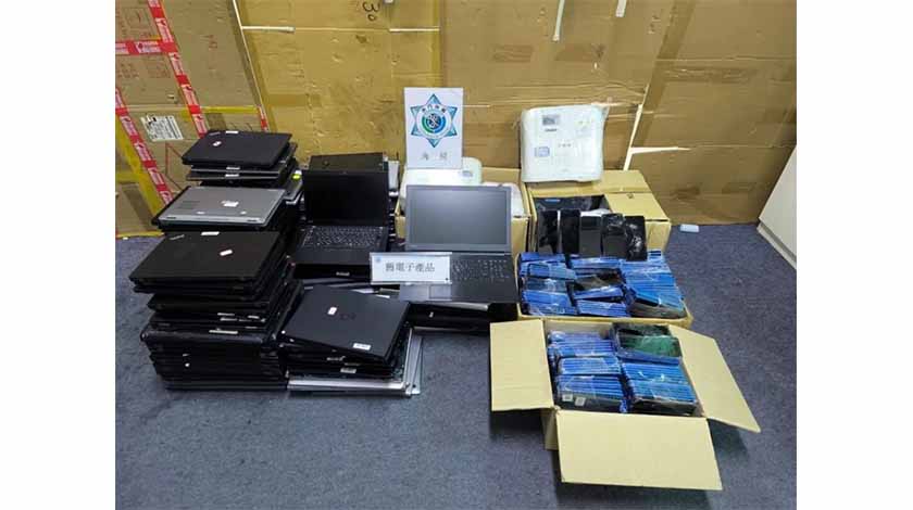 經進一步調查,海關人員再採取行動,搗破位於北區的一個水客活動散貨點,查獲大批舊電子產品,包括舊手機三百部、舊手提電腦一百部及舊投影機九部。行動中拘查一名卅九歲女負責人。